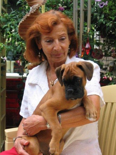 Mijn naam is Victoria Koijmans hier met een van mijn Stardust Boxers, mijn geboorte jaar is 1942 en ben woonachtig in Hilversum. Ben in 1998 begonnen met Mandala tekenen en daar naast heb ik mij zelf ontwikkeld en tot op heden nog steeds vol op aan het tekenen.